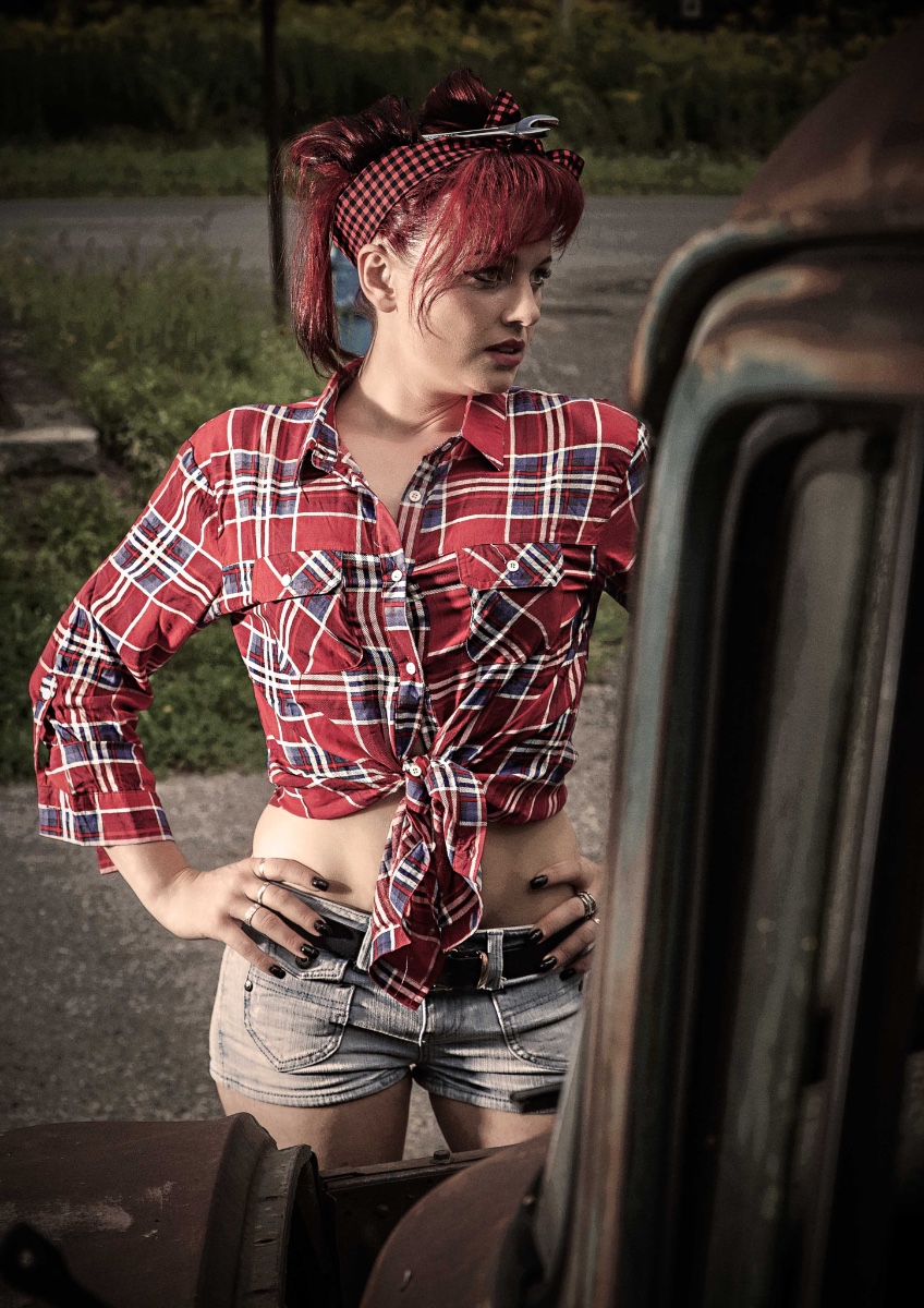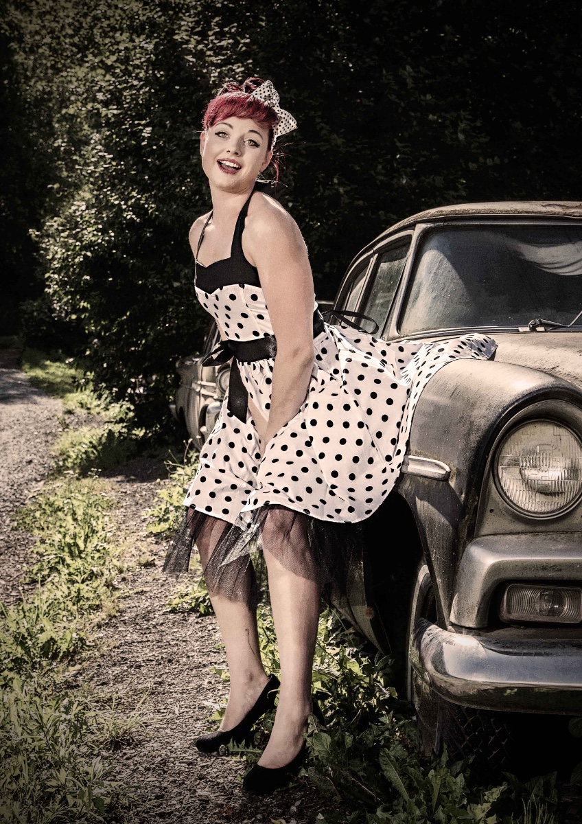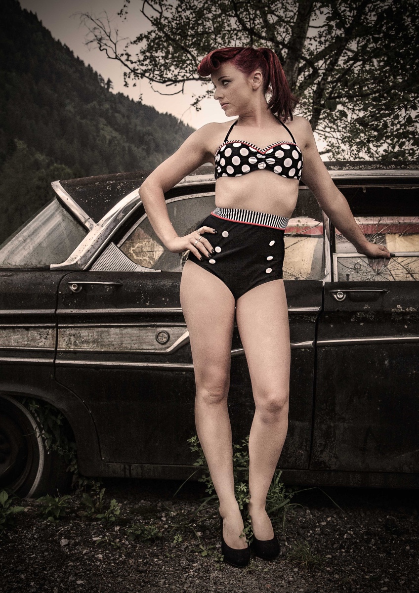 Eher zufällig auf einem Roadtrip durch Österreich habe ich die Location entdeckt: "Roadhouse Oilers69" in Haiming/Tirol. Das ganze Gelände steht voller vergammelter Ami-Schlitten aus den 50er Jahren. Da kann man doch nicht anders, als dort zu shooten...