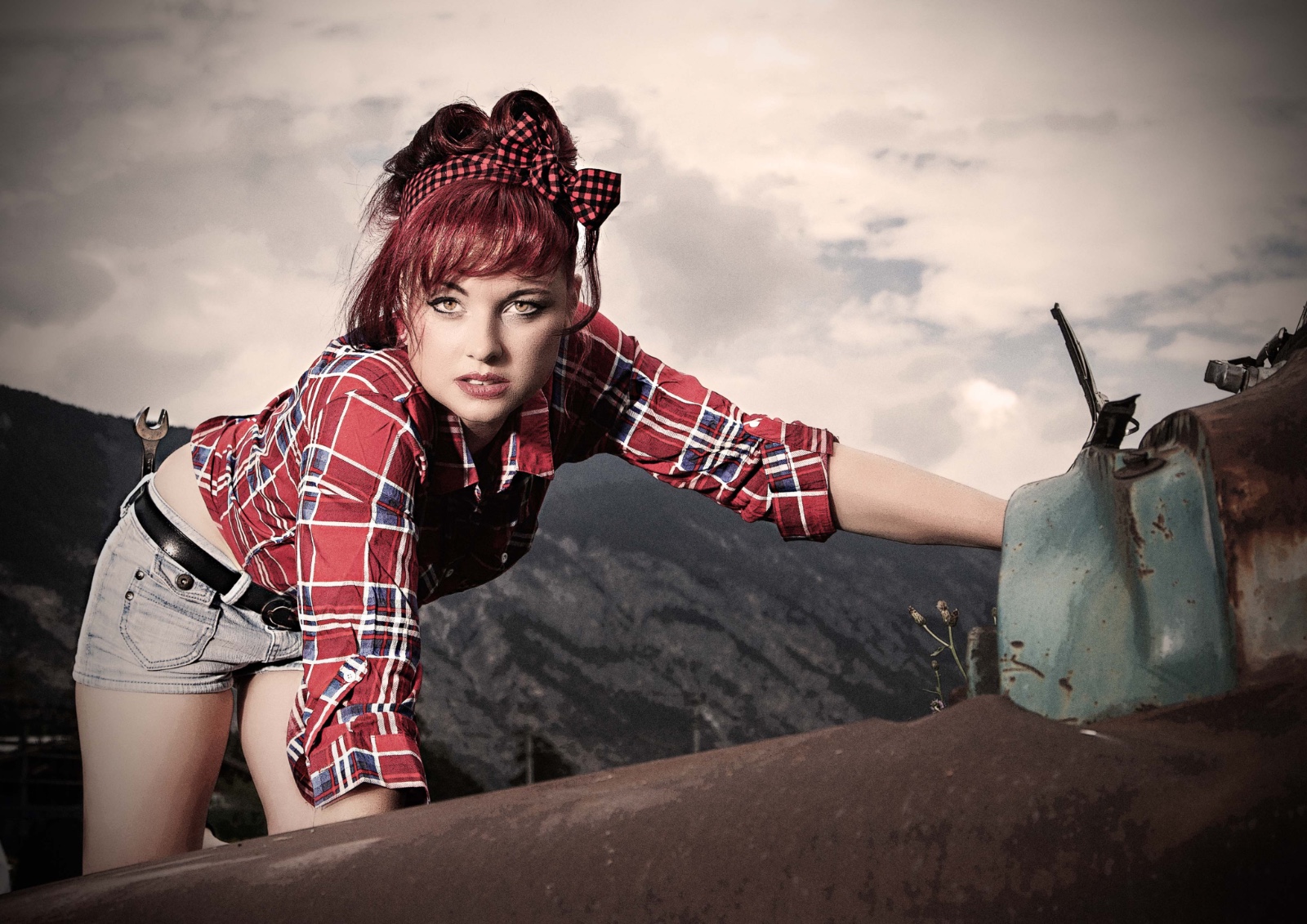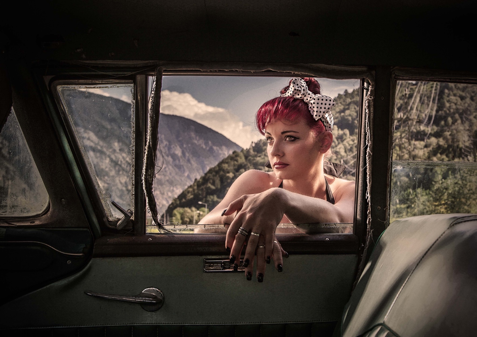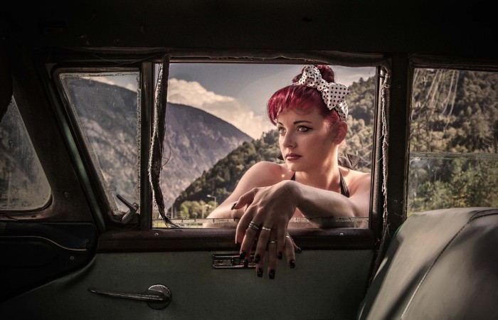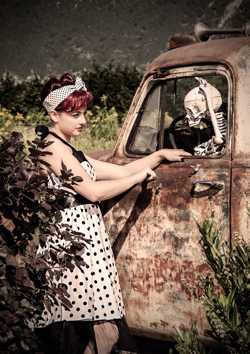 Eher zufällig auf einem Roadtrip durch Österreich habe ich die Location entdeckt: "Roadhouse Oilers69" in Haiming/Tirol. Das ganze Gelände steht voller vergammelter Ami-Schlitten aus den 50er Jahren. Da kann man doch nicht anders, als dort zu shooten...
